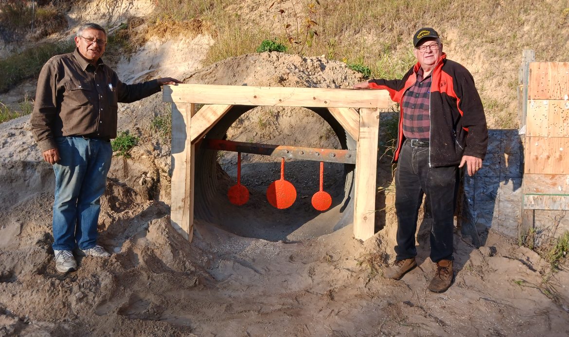 A small crew and a good helper were at work bringing your range to PROVINCIAL SAFETY STANDARDS. We will be putting up a number of safety signs around the three gun ranges. The main work is being done at the 300 yard bench. The safety barrier, (ricochet prevention) was installed at the reactive target culvert on the rifle range. PLEASE DO NOT USE THE BARRIER at the culvert to hang up your targets. You are being monitored on the range and that is a good way to loose your membership. Lets keep it nice as the inspectors were impressed with the condition of the range. The province made an announcement last week about GRIZZLY BEARS are moving further east onto prairie land as the bear numbers keep increasing. The problem is getting out of hand in ranch country in southern Alberta and is general as you go north. FORT ASSISNIBOINE has a number of reports and a sow and cubs were spotted in Neerlandia country. Fish & Wildlife take out 3 to 5 problem grizzly bears every year according to the latest report. BLACK BEARS are another problem as they are grizzly lunch and have been causing problems in farm country. I have reports of black bears causing trouble from Barrhead to Onoway.. Time to get a good dog and keep the old .303 ready for defensive action.